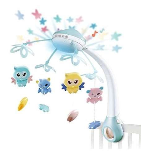 Карусель також має функцію проектора, який відображає різнокольорові зірки на стелі та дає ледь помітне світло. Малюки будуть із задоволенням дивитися на різнокольорові підвіски або проекцію.
