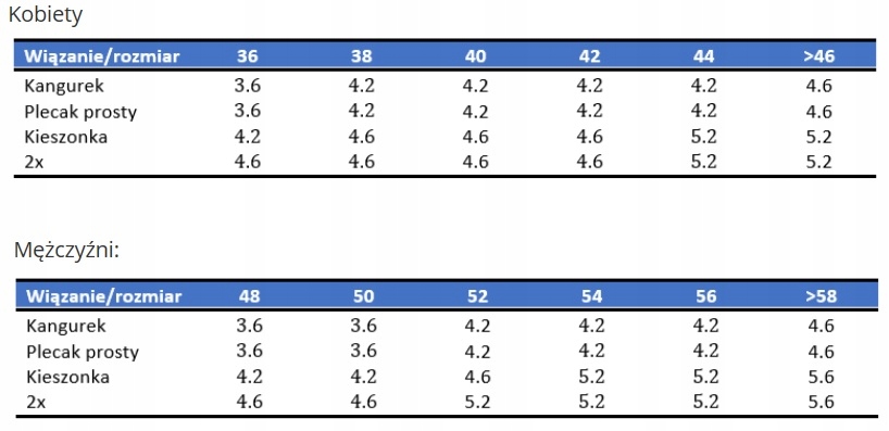 Chociaż nasze maluszki są oczywiście najważniejsze na świecie, to w tym przypadku musisz się powstrzymać. Po ustaleniu, do jakich wiązań chusta będzie używana, najpowszechniejszym kryterium względem osoby noszącej jest rozmiar ubrań oraz w mniejszym stopniu wzrost. Jeśli z jednej chusty będą korzystać dwie osoby, wybieramy taką, która będzie odpowiednia dla tej większej :)