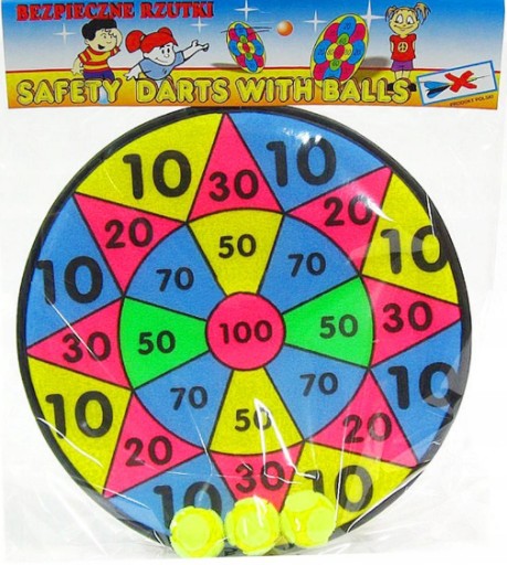 Дартс для дітейможна легко повісити будь-де. Діти, які вперше знайомляться з дартсом, можуть стояти ближче, а коли їхні навички зростають, вони можуть рухатися назад, щоб кинути дротик на липучці на більшу відстань ci. Щит на липучці зроблений так, що м'ячі і дротики ідеально прилипають до нього, завдяки чому навіть при невдалому кидку м'яч не зісковзне з поля, на який він досяг, і не впаде. Навіть пропущений кидок не стане проблемою - всі елементи безпечні для дітей -немає небезпеки, що гострий дротик випадково когось влучить(як і дартс для дорослих).