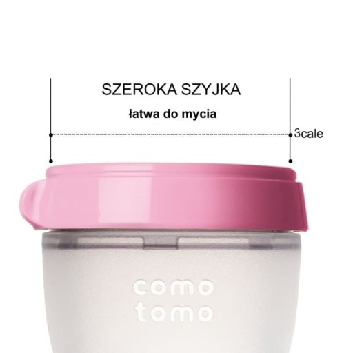 Було проаналізовано думки понад 1000 мам, і майже половина з них сказала, що «перехід від соски Mamine до штучних [пляшечок] сосків» є дуже великою проблемою при переході на вигодовування з пляшечки, пов’язаною з сильним стресом для всієї родини та часто закінчується відмова від пляшки. Ось чому всі силіконові пляшечки MOM'S BREAST COMOTOMO проти коліків розроблені з широкою соскою природної форми, яка імітує форму та поведінку маминих грудей.