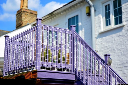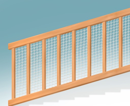 Пропонована нами сітка запобігає переходу дитини чи собаки між рейками перил. Це значно зменшує ймовірність випасти або застрягти на сходах.