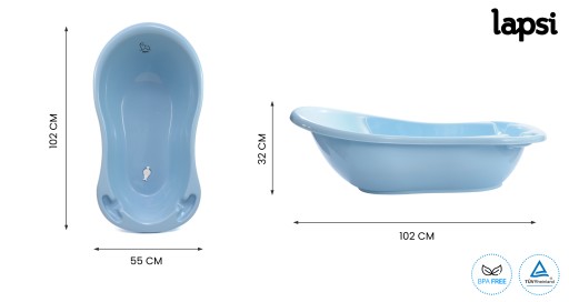 Синя дитяча ванночка Lapsi серії Sonik ідеально підходить для купання немовлят і дітей старшого віку.