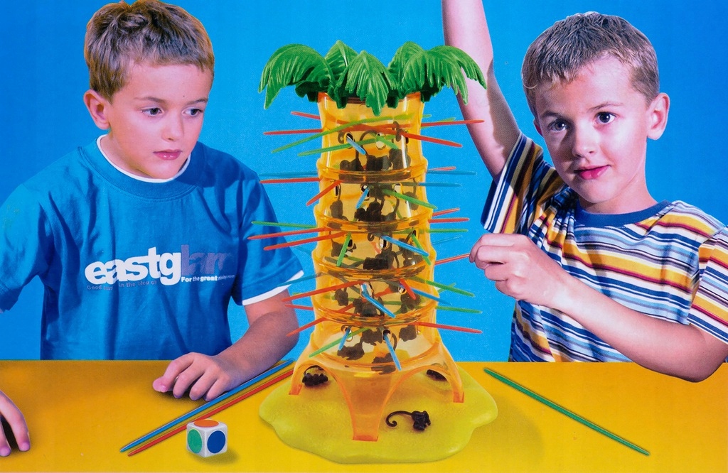 Po ustawieniu wieży z poprzeczkami i wrzuceniu małpek do środka, zaczynamy grę.