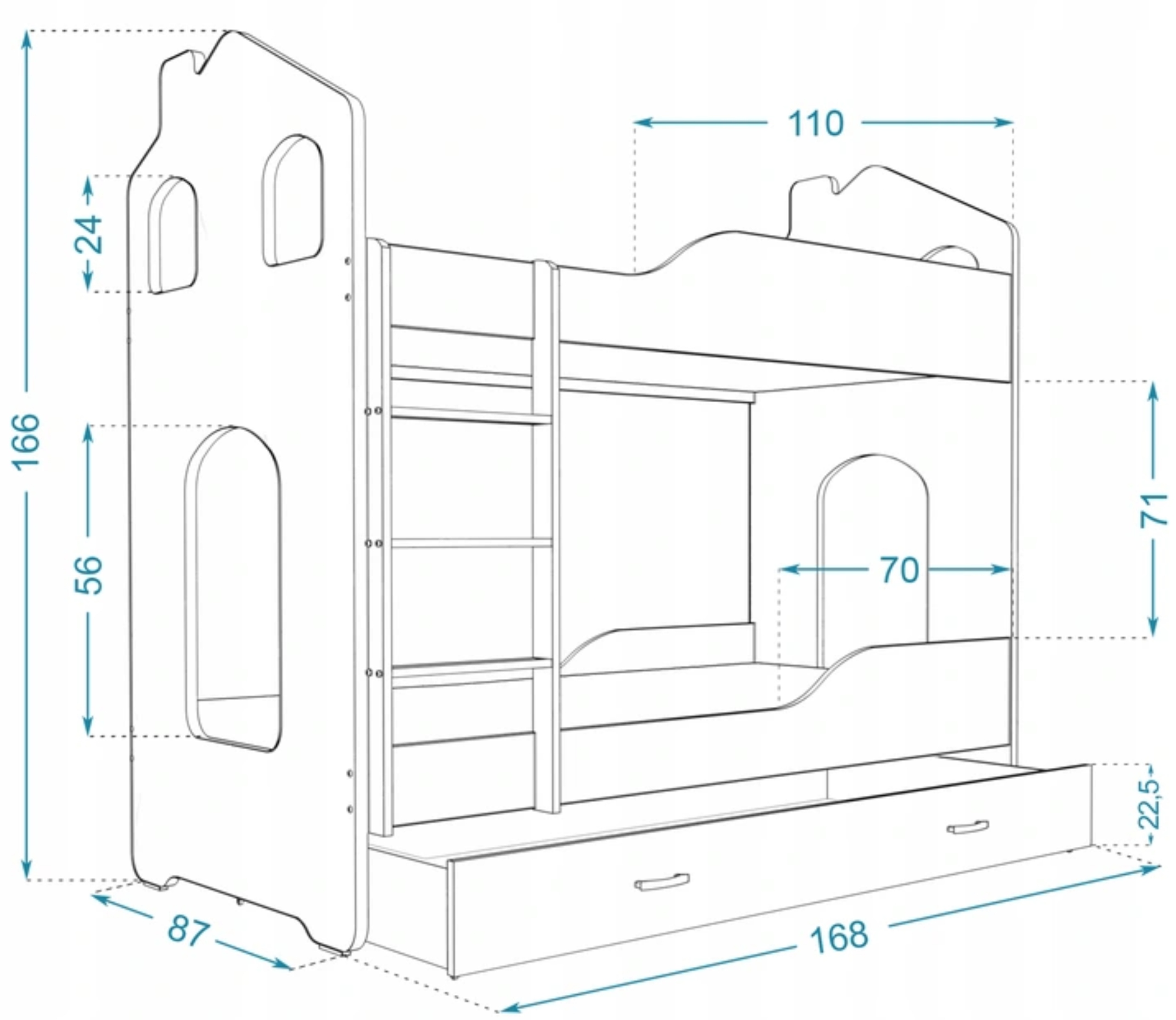 Двухъярусная кровать ДОМИНИК КОТТЕДЖ 2 160x80 + графика