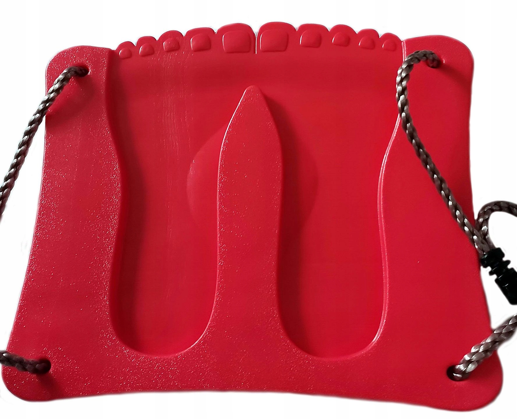 Umożliwia huśtanie zarówno na siedząco jak i na stojąco. Staranność wykonania oraz stabilna konstrukcja ze specjalnymi otworami w kształcie stóp zapewnią bezpieczeństwo bawiącym się dzieciom.