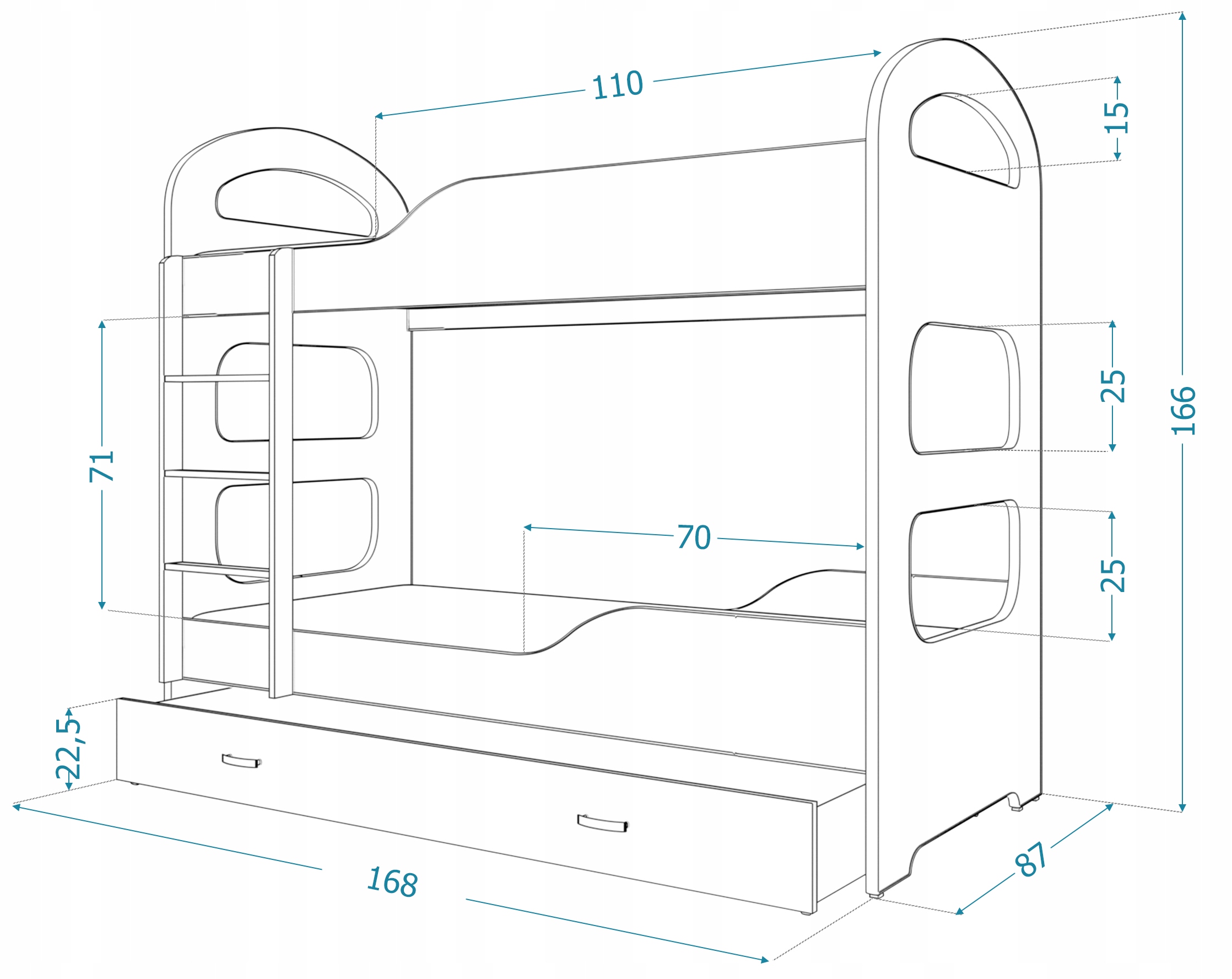 Двухъярусная кровать ДОМИНИК 160x80 + ящик + матрас