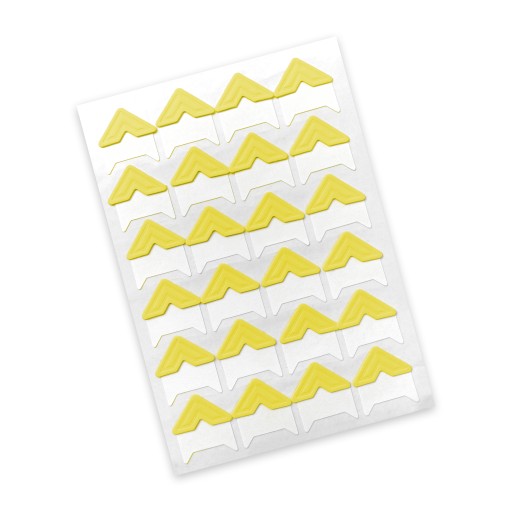 - На одному аркуші є 24 самоклеючі куточки, що дозволить розмістити 6 фотографій в альбомі або 12 фотографій, якщо використовувати два куточки на фото.