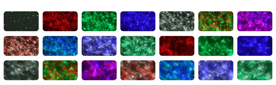 - 4. podstawowe kolory (niebieski, czerwony, zielony, biały), czerwonym i zielonym światłem laserowym oraz różnymi trybami migania, to romantyczne światło nocne może wyświetlać 21 efekty oświetlenia!