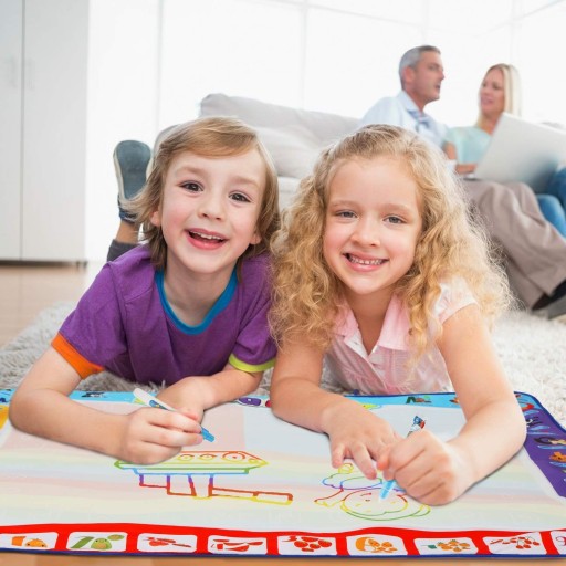 - [Більша область малювання] Величезний розмір: 100 100 см, достатньо великий, щоб мати багато місця для малювання та кольорову рамку посередині. Завдяки цьому ваші діти можуть малювати на килимку не тільки самі, але навіть з друзями. Це не тільки килимок для малювання для вашої дитини та друзів, а й засіб спілкування між вами та вашою дитиною.
