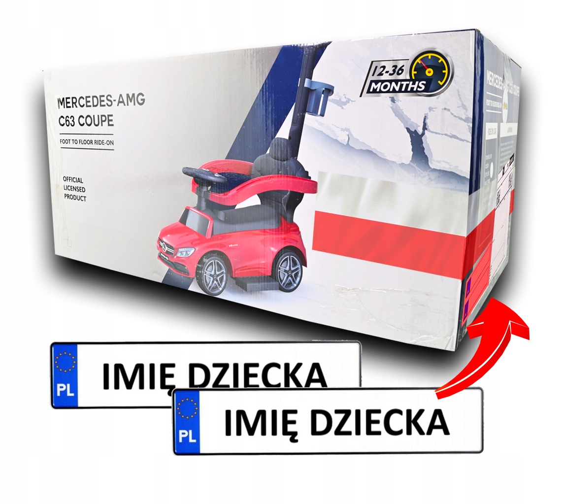 Do jeździka dołączamy GRATIS dwie tablice rejestracyjne z imieniem Twojego dziecka :)