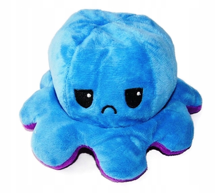Maskotka ośmiorniczka została uszyta z wysokogatunkowego pluszu, jest bardzo miękka i miła w dotyku. Maskotka 2 w 1, wystarczy wywrócić ją na drugą stronę, żeby zmienić jej wygląd oraz humor.