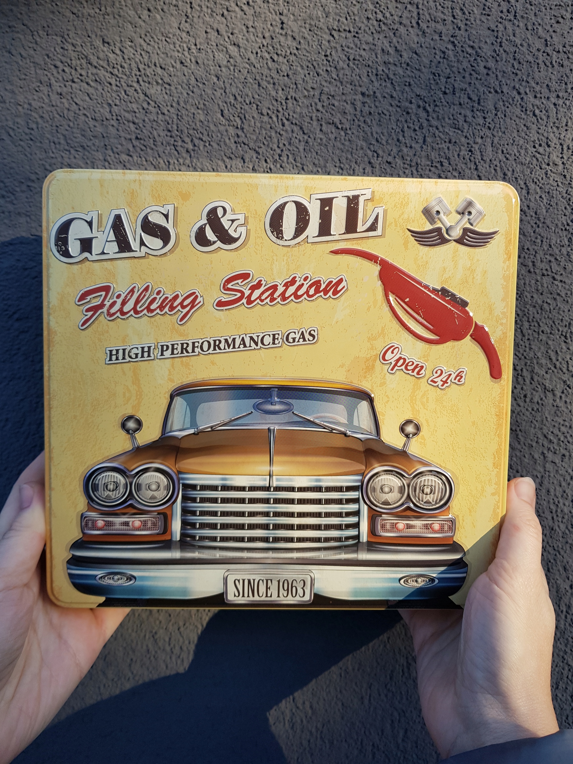 МЕТАЛЛИЧЕСКАЯ коробка 23см Коробка РЕТРО Автомобиль, Гараж