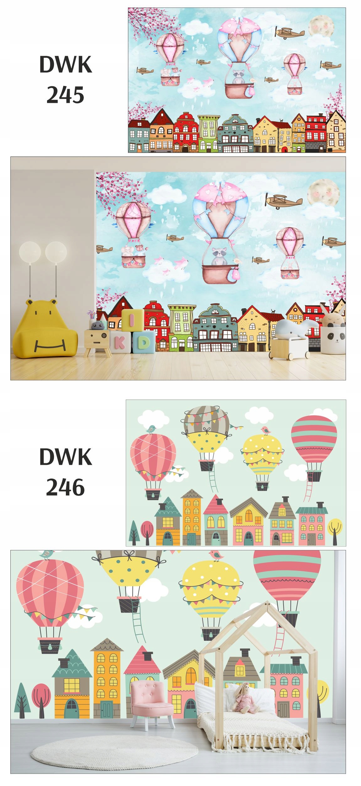 Настенные фрески для детей, воздушные шары, облака, лодка