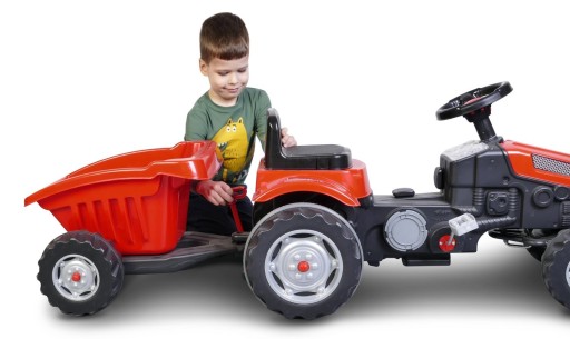 Дивовижне задоволення для маленьких любителів великих автомобілів. Трактор подарує юним водіям багато годин фантастичного задоволення. Сенсаційний педальний автомобіль зі знімним причепом і регульованим сидінням. Разом із причепом трактор має аж143 смдовжина. Ідеально підходить для гри вдома та на вулиці.