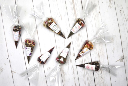 Целофанові ріжки з чаєм в подарунок, подяка гостям