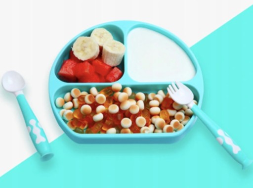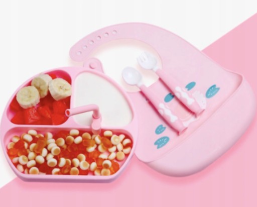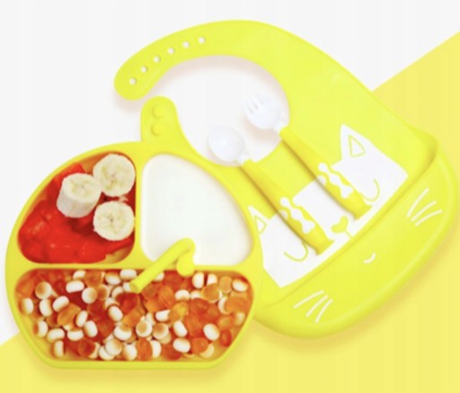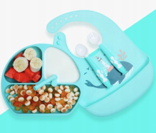 Силіконова тарілка З ВІДДІЛЕННЯМИ з набором столових приборів і нагрудником!