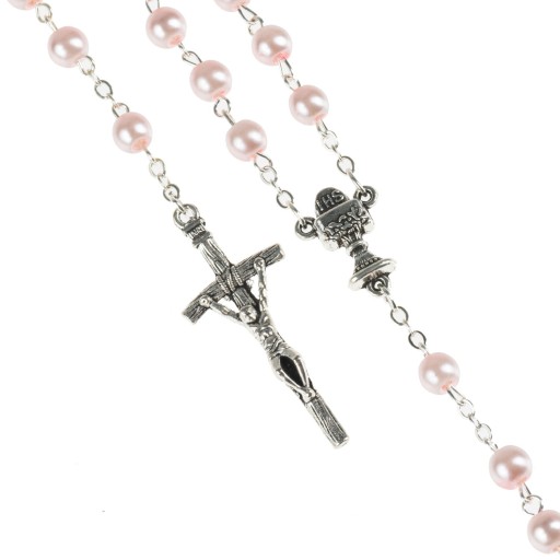 Вервиця для Першого Причастя з перламутрового скляного бісеру