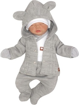 5-cz włóczkowa wyprawka niemowlęca 68 szara