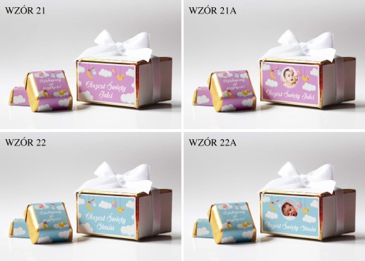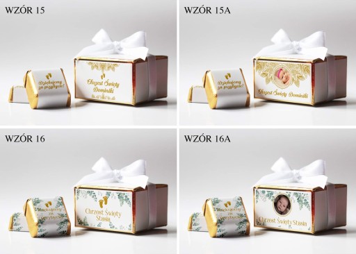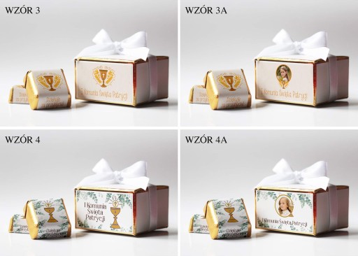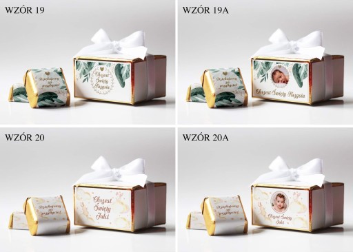 Шоколадні цукерки з вашою фотографією та текстом або будь-яким текстом на Причастя, Хрещення, Рік, День Народження. Молочні шоколадні цукерки з фісташковою начинкою. Ціна вказана за 1 коробку з 2 шт. великі молочні цукерки (17г - вага 1шт, 35х35х17мм). Â Друк на коробці зроблений на приклеєному до неї шматку картону. Персоналізація від хв. 10 шт. маленькі ящики. Менші обсяги доставляються з довільно вибраним малюнком.