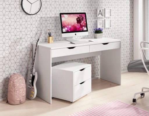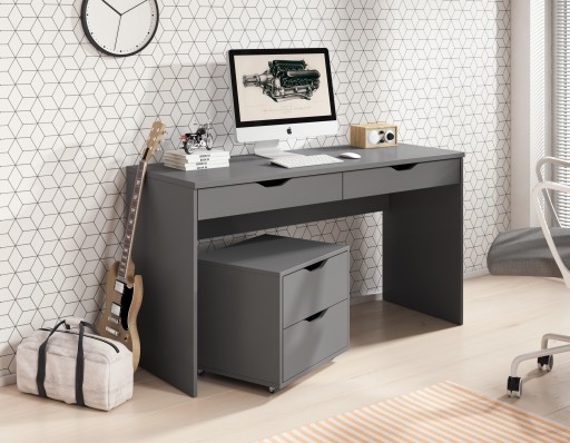 Письмовий стіл Mauro простий дизайн, інноваційне рішення ідеально впишеться в сучасний інтер'єр молодіжної кімнати або офісу. Письмовий стіл Mauro складається з двох ящиків без ручок, розташованих під верхньою поверхнею. Він доступний у кольорах графіт та білий матовий. Крім того, в опцію входить функціональна тумба на колесах з двома висувними ящиками, що збільшить простір для зберігання.