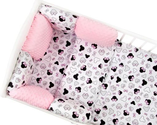 - 6 подушок приблизно 30 см х 30 см із зав’язками, що створюють захист для дитячої коляски (3 подушки норки та 3 бавовняні подушки)