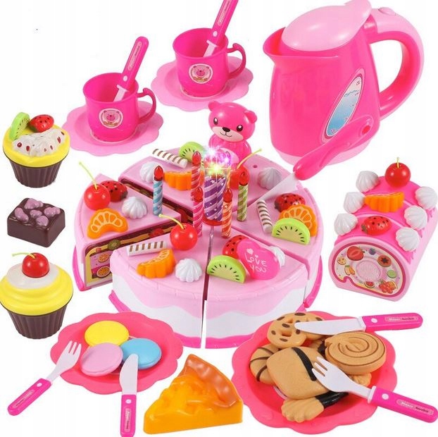 ТОРТ на день РОЖДЕНИЯ Для Резки + Чайник столовые Приборы 80el