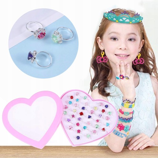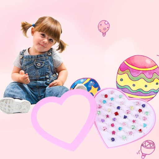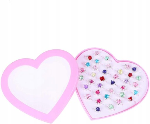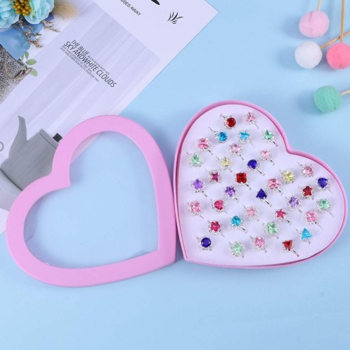 Прекрасна колекція з 36 кілець - ідеальний набір для кожної дівчинки. Ці іграшкові каблучки дуже гарно зроблені, казково барвисті, схожі на каблучки казкових принцес! :)