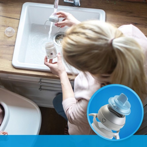 Мундштук спеціально сконструйований так, що з нього вільно капає вода, щоб дитині не доводилося докладати особливих зусиль для вивчення нових навичок на початку та не падати духом.