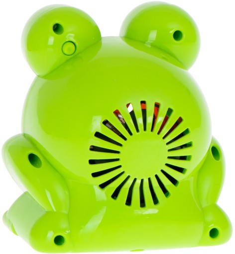 - Іграшка дозволяє видувати різнокольорові бульбашки з машинки. Просто залийте рідину в отвір, де знаходиться диск з очима, увімкніть кнопку за правим оком жаби, яка запускає вентилятор, і поверніть диск, і все. Під час обертання диска іграшка випускає чарівні райдужні бульбашки.