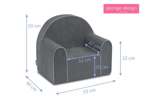 Розміри: ширина 55 см, висота 50 см, глибина 40 см, глибина сидіння 33 см, висота сидіння від підлоги 20 см, висота спинки 30 см.
