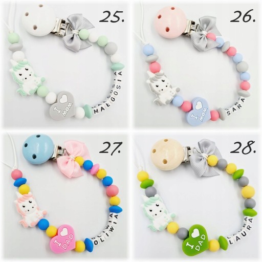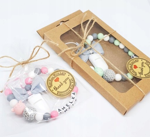 - силіконовий єдиноріг / бусинка метелик (для дівчинки) або паровозик / машинка (для хлопчика)