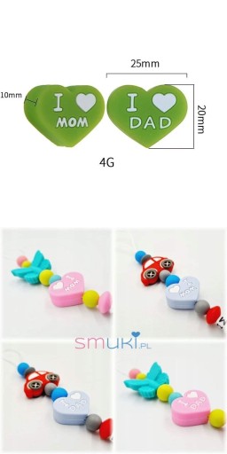 - силіконова намистина СЕРДЕЦЕ (ДВОСТОРОННЯ: з одного боку «Я люблю маму», з іншого «Я люблю тата»)