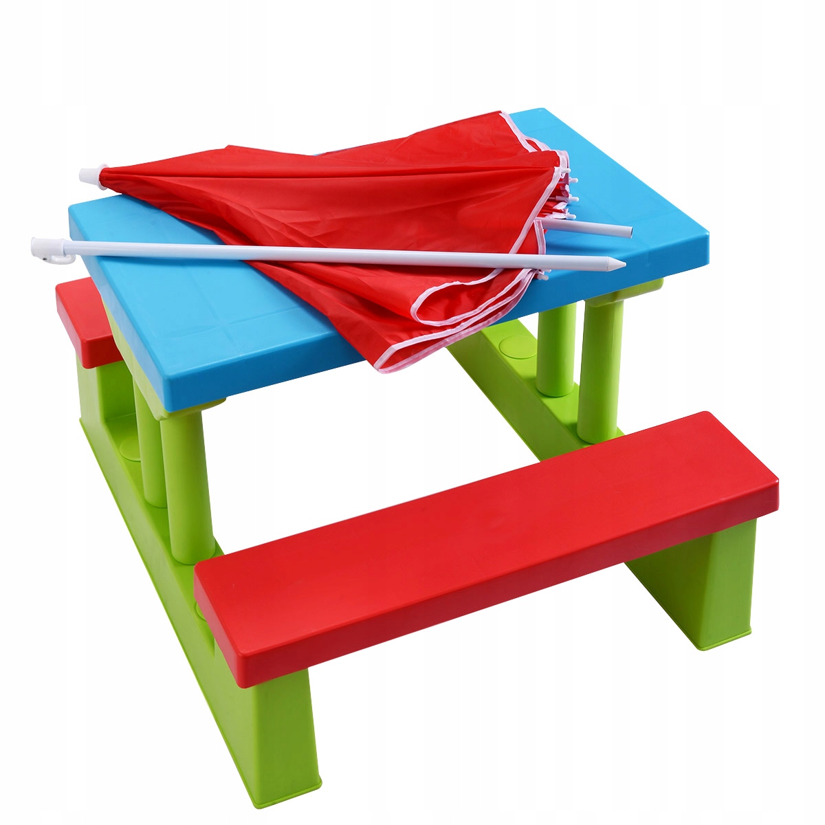 ZESTAW OGRODOWY STOLIK ŁAWKI PARASOL DLA DZIECI