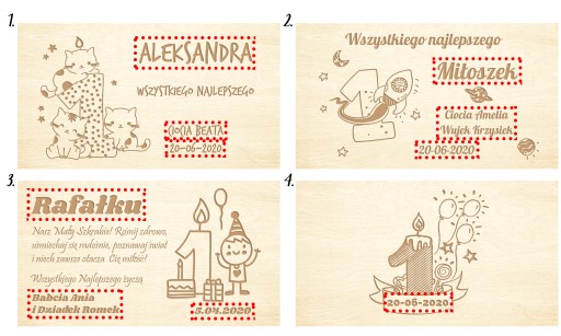 Після здійснення покупки не забудьте надіслати інформацію про обраний візерунок і дані, необхідні для персоналізації. Місце, що підлягає зміні, позначене червоною рамкою.