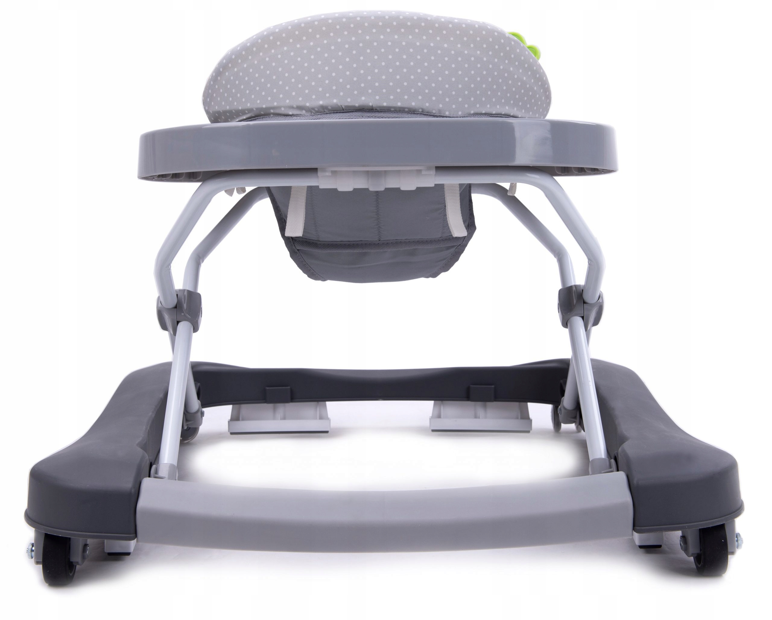 - Przednie koła chodzika są plastikowe i zostały dodatkowo powleczone silikonem a tylne koła są gumowe.