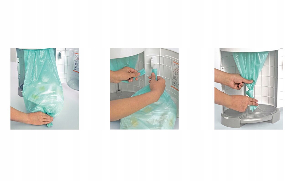 Wkład to zwinięty w specjalny sposób foliowy rękaw. Worek nakłada się na plastikową obręcz wbudowaną w pojemnik. Jeden wkład w rozmiarze Standard 16l mieści nawet do 495 pieluch.