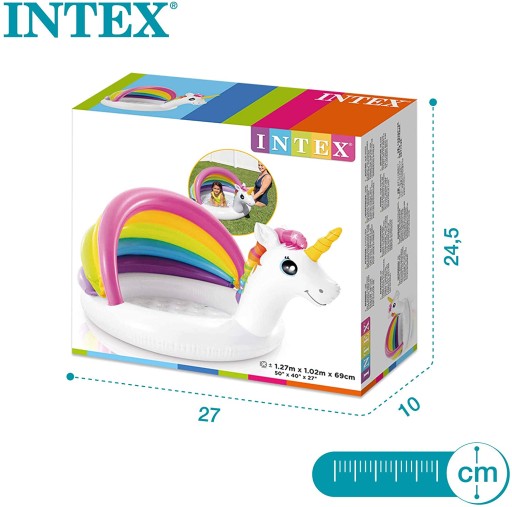 Басейн у вигляді не білого поні з символічним райдужним хвостом стане окрасою самого двору, а при використанні за призначенням назавжди підкорить серця молодших членів сім'ї. Крім того, надувне дно робить купання в Uniroc більш приємним, а барвистий навіс не тільки радує око, але і захищає від теплового удару і сонячних опіків, що особливо важливо, якщо ви збираєтеся купувати басейн для дітей.