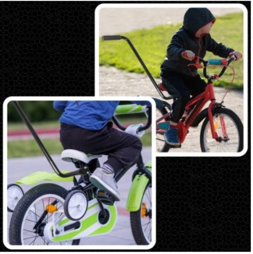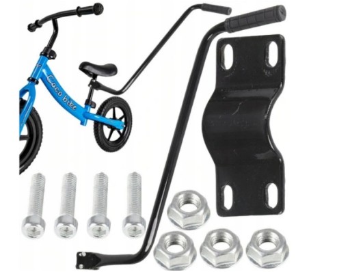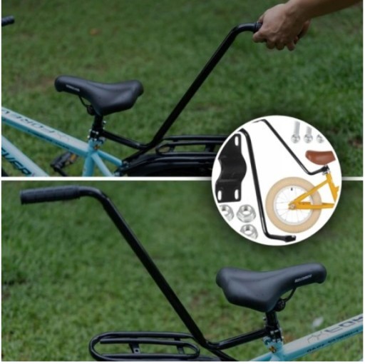Встановлюється під сідлом велосипеда. Має гумову ручку, завдяки якій ви зможете безпечно вести дитину на велосипеді.