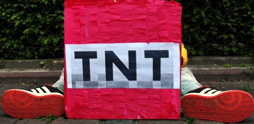 - Щоб надати піньяті кубічної форми, ми виготовили її з 3-х шарового гофрованого картону товщиною 3 мм, на якому є прорізи, щоб діти могли дістати солодощі без зайвих зусиль.