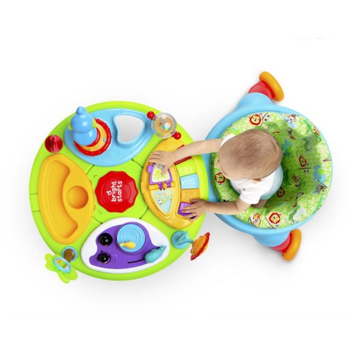 Active Play Center - це унікальний продукт, який росте разом з вашою дитиною! Лауреат багатьох престижних нагород. Стіл у новому кольорі та темі з різнокольоровими іграшками гарантує аж 15 різних ігрових можливостей. Це дає дитині багато стимулів для розвитку, радості та позитивних емоцій. Крісло, прикріплене до столу, обертається навколо нього на 360 градусів, щоб дитина могла легко дістатися до всіх іграшок. Сидіння регулюється зовні за допомогою ременів, щоб підігнати розмір сидіння до розміру дитини.