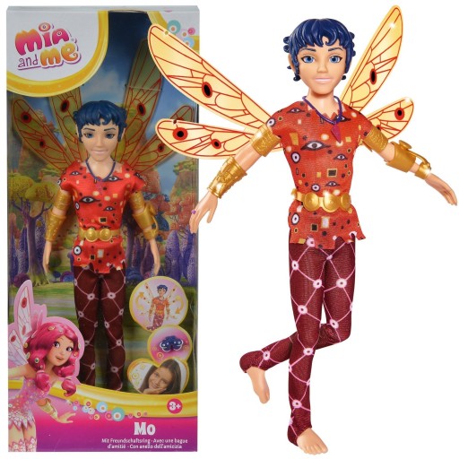 Мо володіє лялькоювеликі рухомі крилаЙого волосся темно-синього кольору, і він одягнений у характерний червоно-бордовий одяг. Мо має рухливу голову, руки і згини в колінах.Додатково в набір входитькільце для дівчинки.