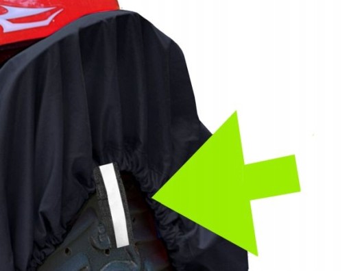 Край накидки натягнутий еластичним шнуром (захованим всередині), який утримує її під час катання. Завдяки цьому надягати накидку дуже просто і швидко.
