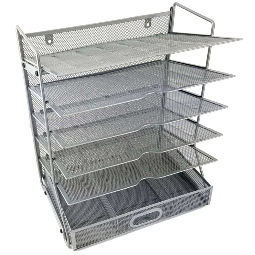 Завдяки отворам для кріплення на задній стороні контейнер для документів можна легко повісити на шурупи або цвяхи, вставлені в стіну. Міцна конструкція сортувальника документів дозволяє використовувати його також як полицю, що стоїть на столі, а ручки, розташовані у верхній частині, дозволяють безпечно переносити його без ризику висипання документів.