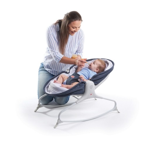 Це ідеальне місце для розваг. Ми робимо це, піднімаючи спинку в положення лежачи і складаючи блокаду спереду і ззаду - таким чином ми перетворюємо баунсер в качалку і активне місце для гри.