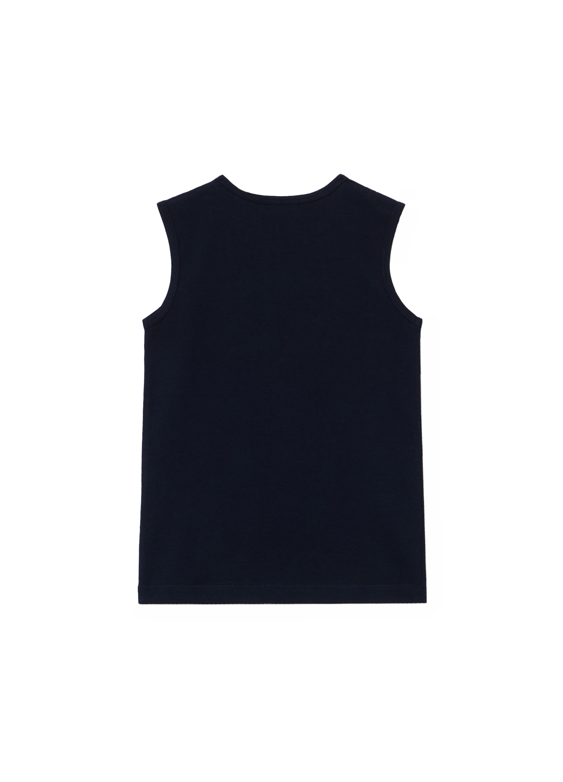 Koszulka bez rękawów w kolorze granatowym, z nadrukiem z przodu. 100% bawełna.