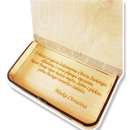 Дерев'яна, міцна та екологічна листівка на пам'ять до святкування Хрещення.