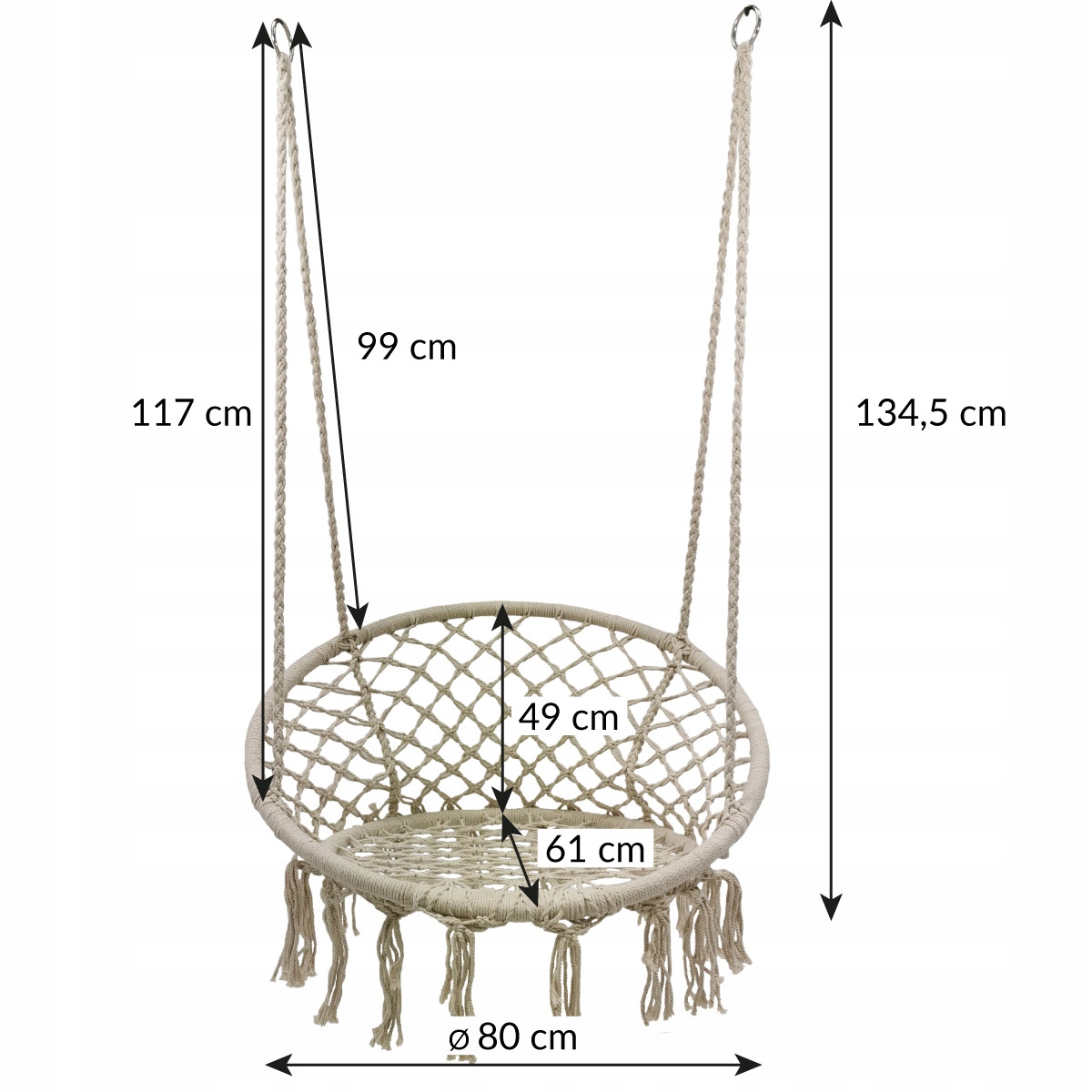 - materiał: stelaż - stal, sznurki, frędzle i plecionka - bawełna/poliester