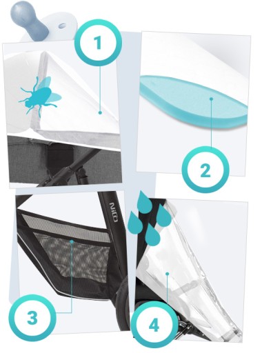 - Дощовик, розроблений таким чином, щоб захистити маленького пасажира від дощу. Він також буде ідеальним захистом від мряки або навіть снігу.