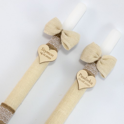 - хрестильна свічка з розмірами з декоративною джутовою стрічкою