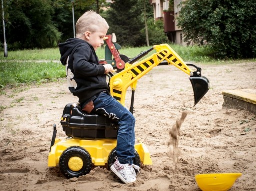ДИТИНА МОЖЕ КЕРУВАТИ ПЕРЕСУВНИМ ЕКСКАВАТОРОМ, ОБЕРТАТИСЯ НА СИДІННІ, ЩО ОБЕРТАЄТЬСЯ, НА 360 ГРАДУСІВ, ПЕРЕМІЩАТИ ВСІЙ КОМПЛЕКТ ВПЕРЕД І НАЗАД, ШТУХНУВШИ НІЖКАМИ!